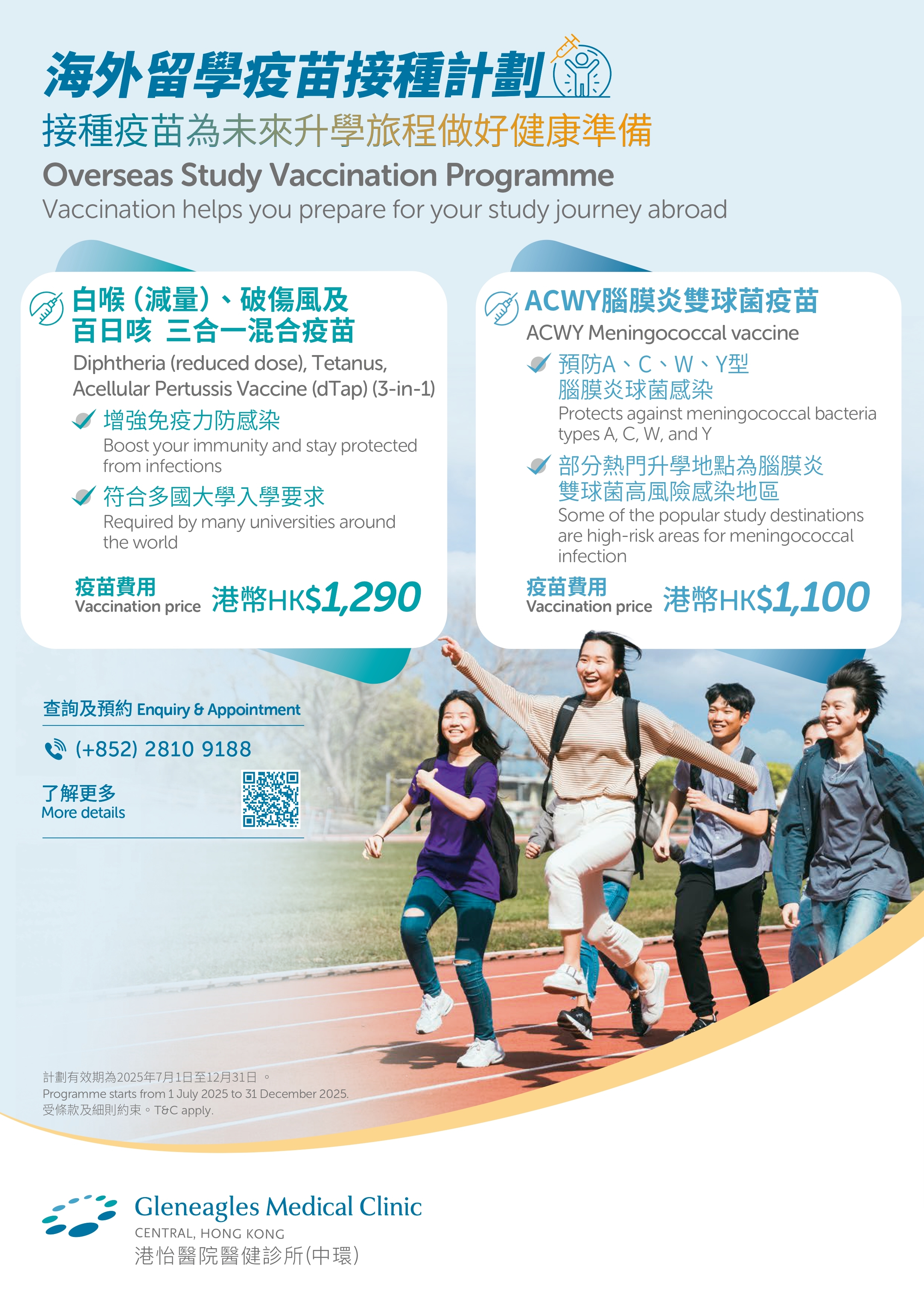Overseas Study Vaccination Programme (Gleneagles Medical Clinic Central)