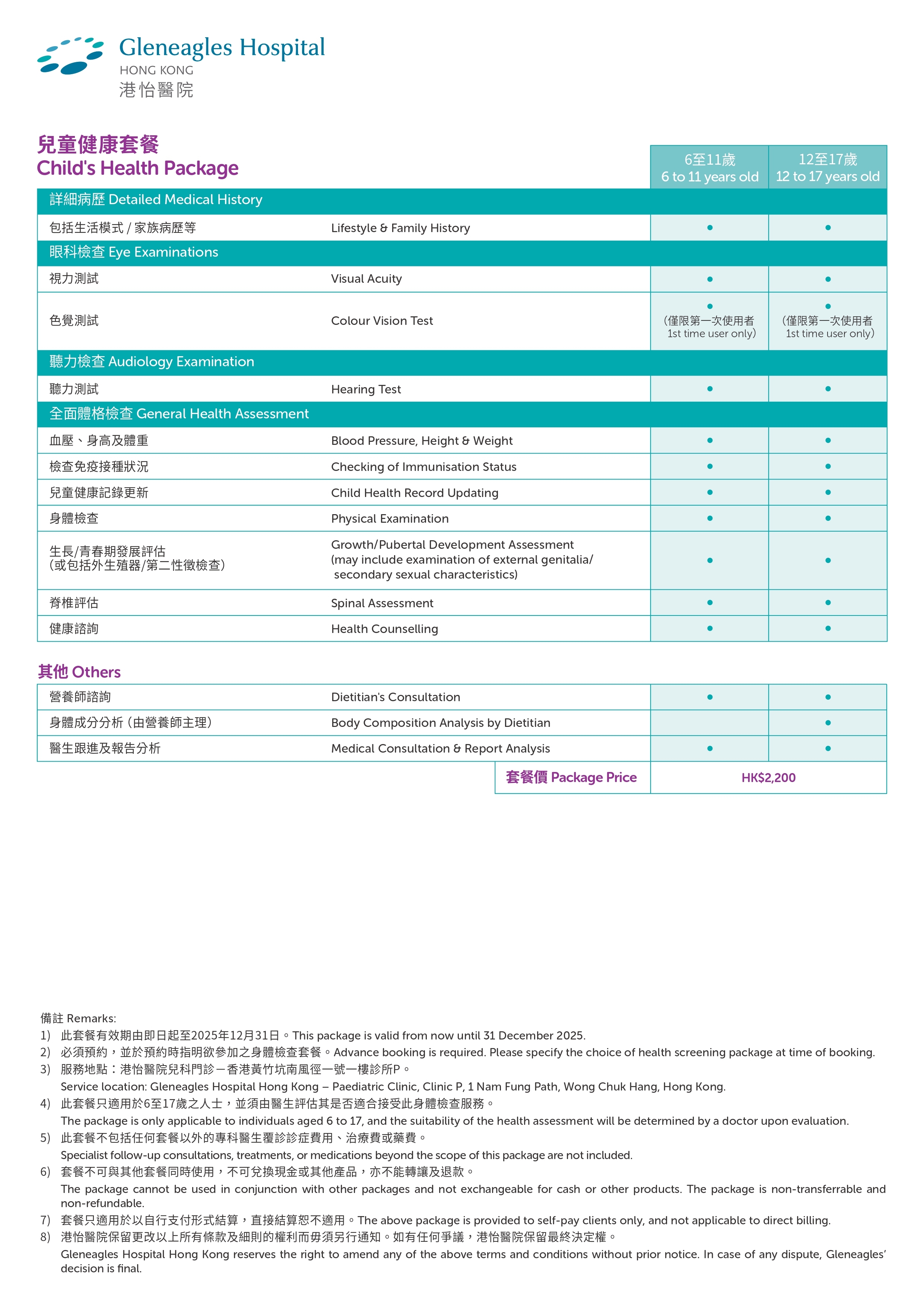 首页 活动与推广 儿童健康套餐